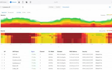 Ubiquiti WIFI Analyser console showing coverage and throughput